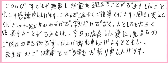 このたび子どもが無事に卒業を迎えることができましたこと、心より感謝申し上げます。