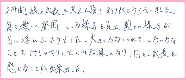 2年間娘の成長を支えて頂きありがとうございました。