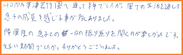 HOPPA草津若竹園へ通って半年でしたが、園での生活を通して息子の成長を感じる事が多くありました。