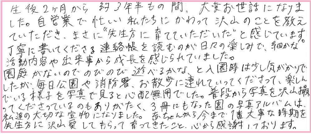 生後2ヶ月から約3年半もの間、大変お世話になりました。