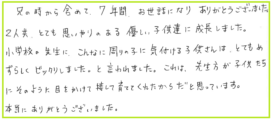 兄の時から含めて、7年間 お世話になりありがとうございました。