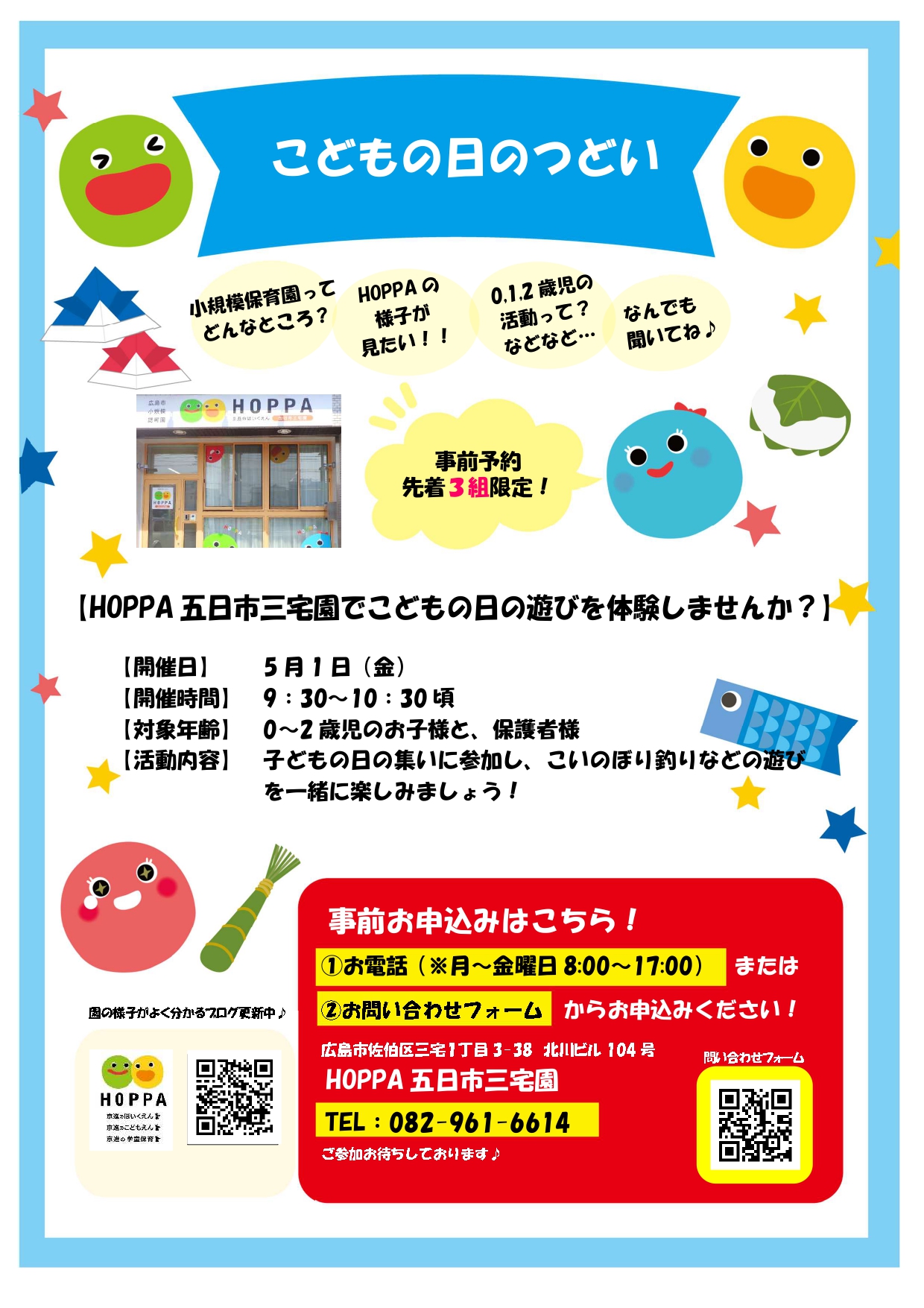 【広島市佐伯区イベント情報】こどもの日のつどい【HOPPA五日市三宅園】