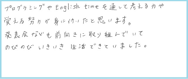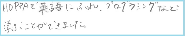 HOPPAで英語にふれ、プログラミングなど学ぶことができました。