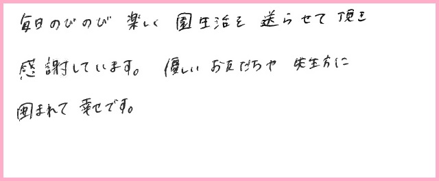 毎日のびのび楽しく園生活を送らせて頂き感謝しています。