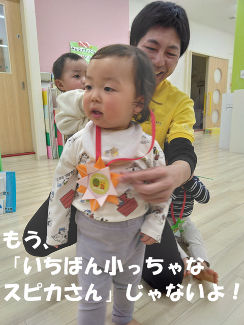 まずは、0歳児クラスから1歳児クラスへの進級をお祝い♪