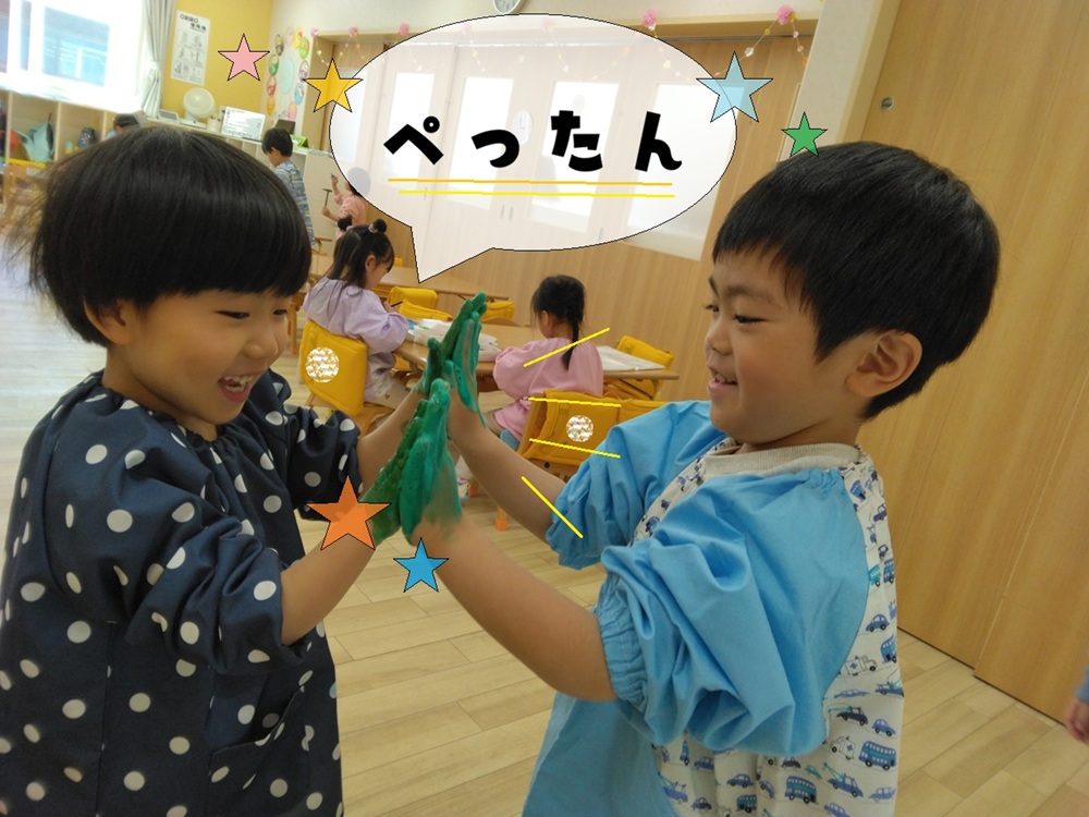 お友だちと手を合わせる姿にほっこり😊