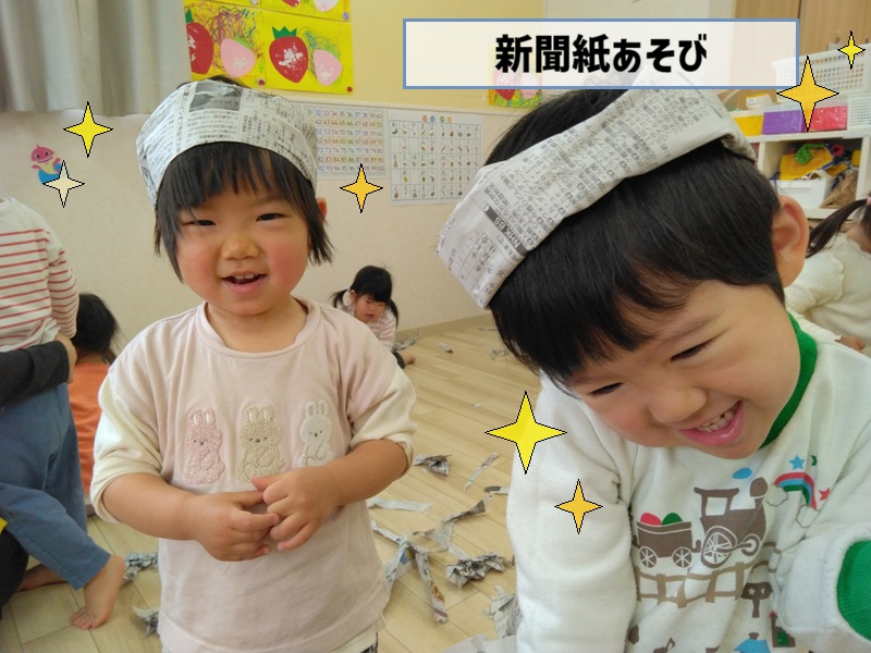 お部屋の中で新聞紙遊び✨
