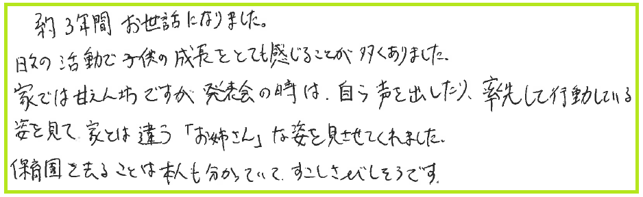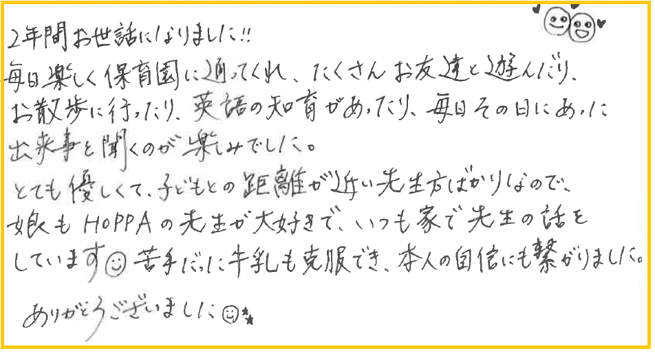 今回のブログでは、卒園児の保護者様からいただいたメッセージをご紹介します😊