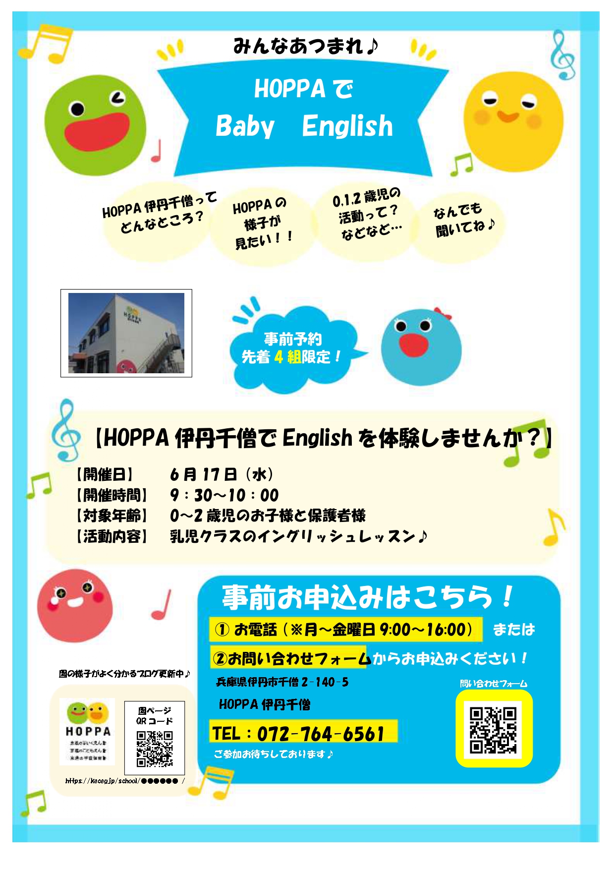 【兵庫県伊丹市イベント情報】みんなあつまれ!HOPPAでBaby English【HOPPA伊丹千僧】