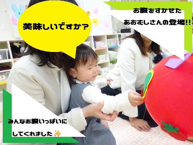 あおむしさんも遊びに来てくれて、緊張がほぐれました。