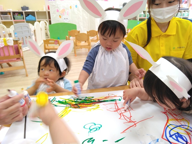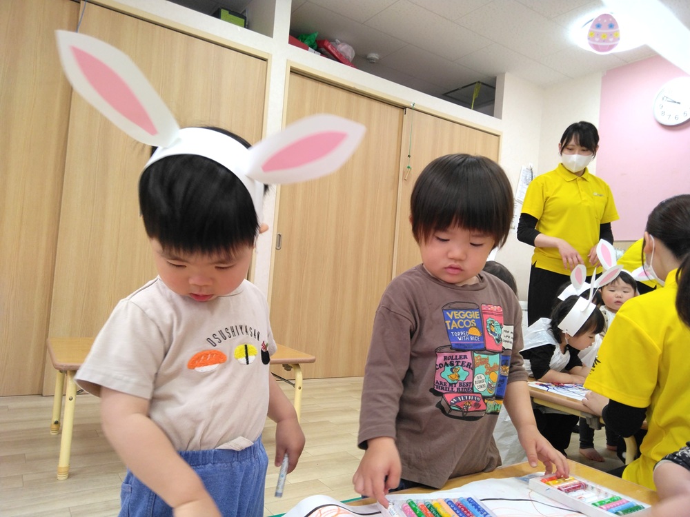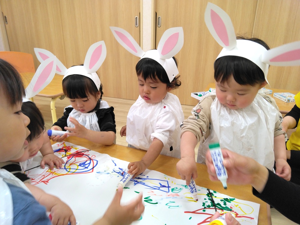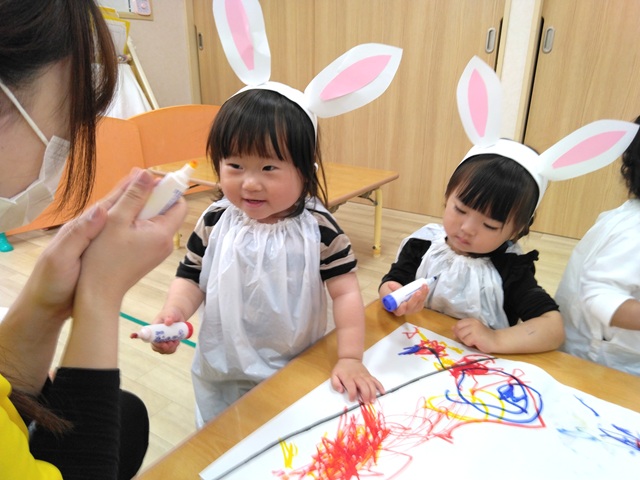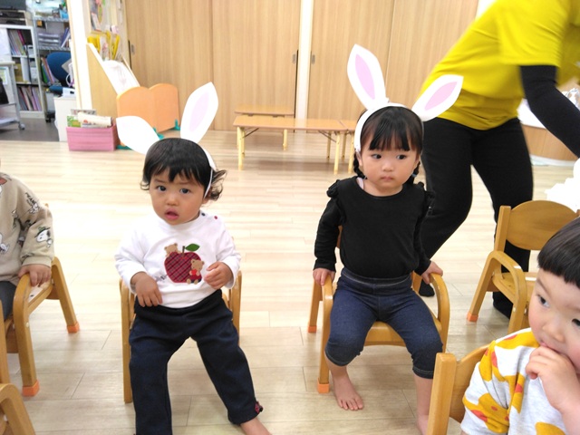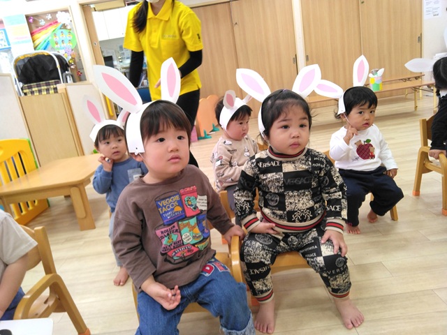 なので、子どもたちもうさぎのお耳をつけて参加しました。