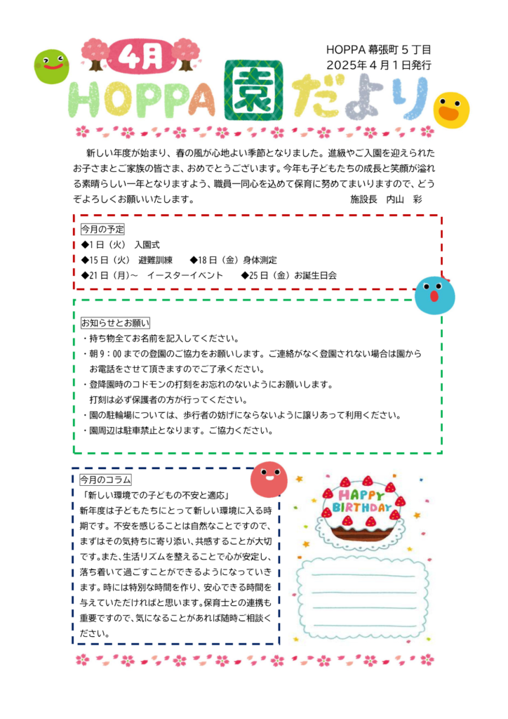 みなさんこんにちは!HOPPA幕張町5丁目(千葉県千葉市認可保育園)です。