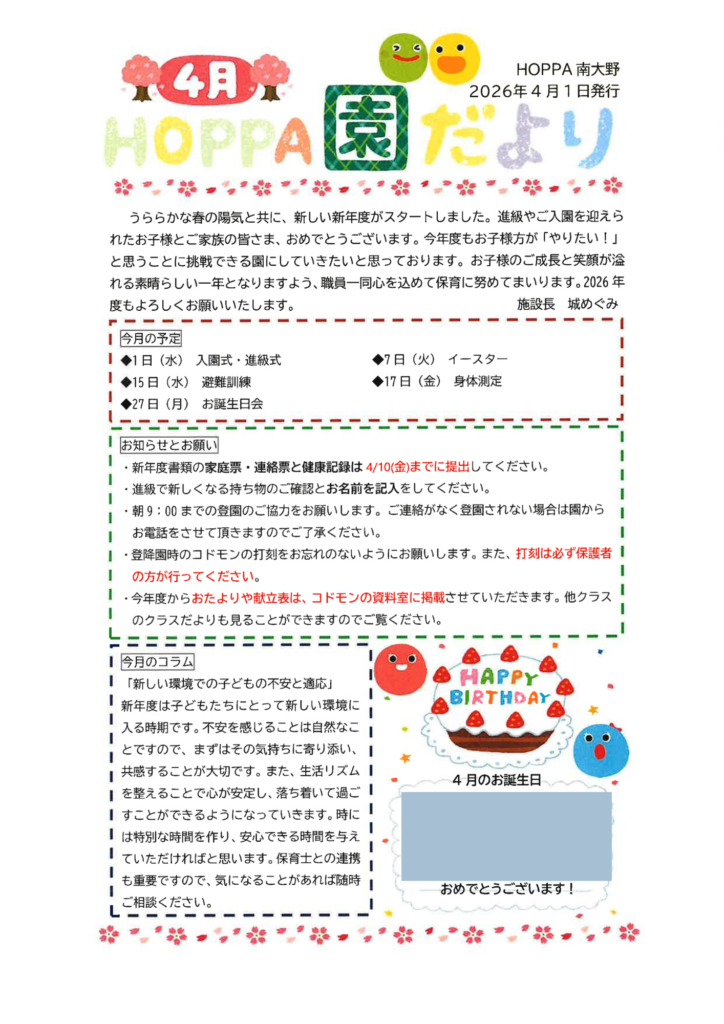 4月の園だよりご紹介します。