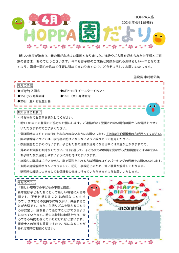 4月の園だよりご紹介します。