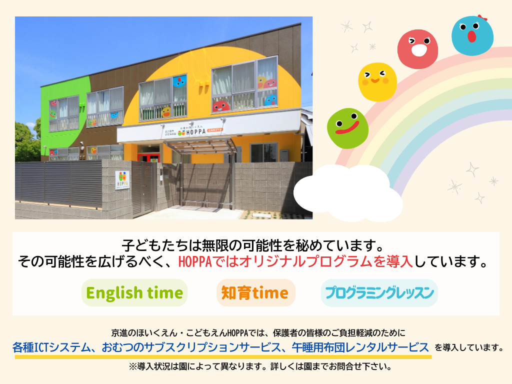 | 10:00 | 設定保育【お散歩・製作活動等】0歳児:ミルク・離乳食 | 設定保育【お散歩・製作活動等】 |