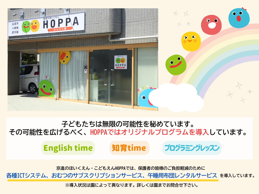 ■延長保育料:30分の利用につき500円 (以降30分ごとに500円)