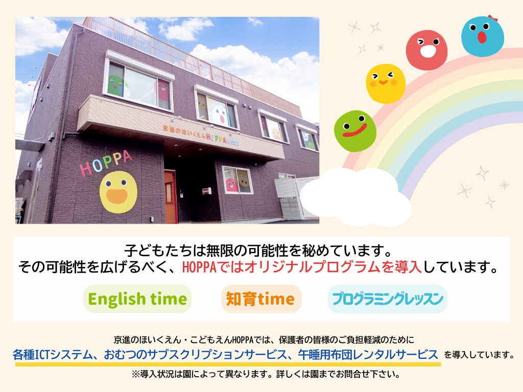 | 10:00 | 設定保育【お散歩・製作活動等】0歳児:ミルク・離乳食 | 設定保育【お散歩・製作活動等】 |
