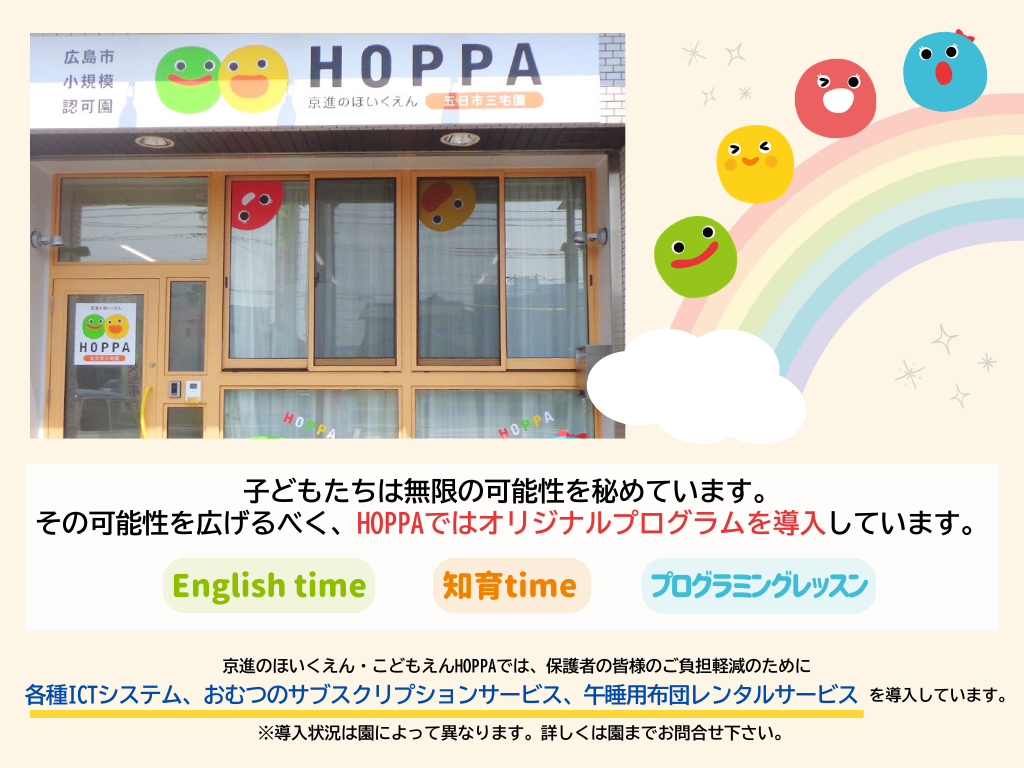 ■延長保育料:30分の利用につき500円 (以降30分ごとに500円)