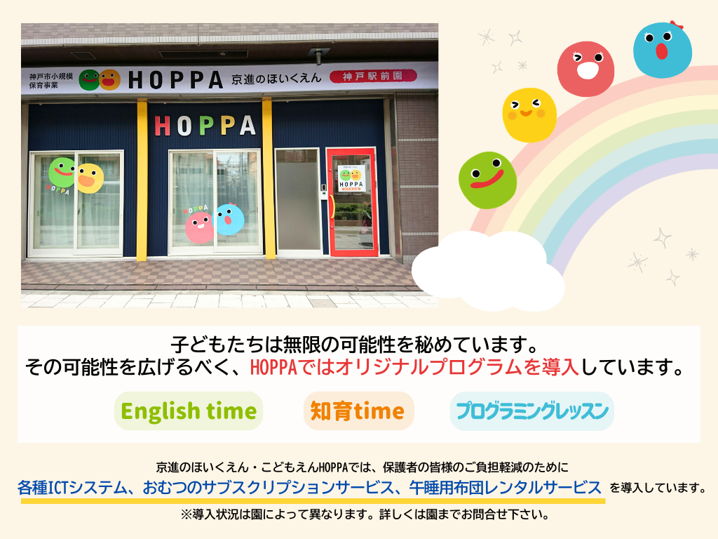 午前8時から午後6時までの間で、保育が必要な時間おあずかりします。