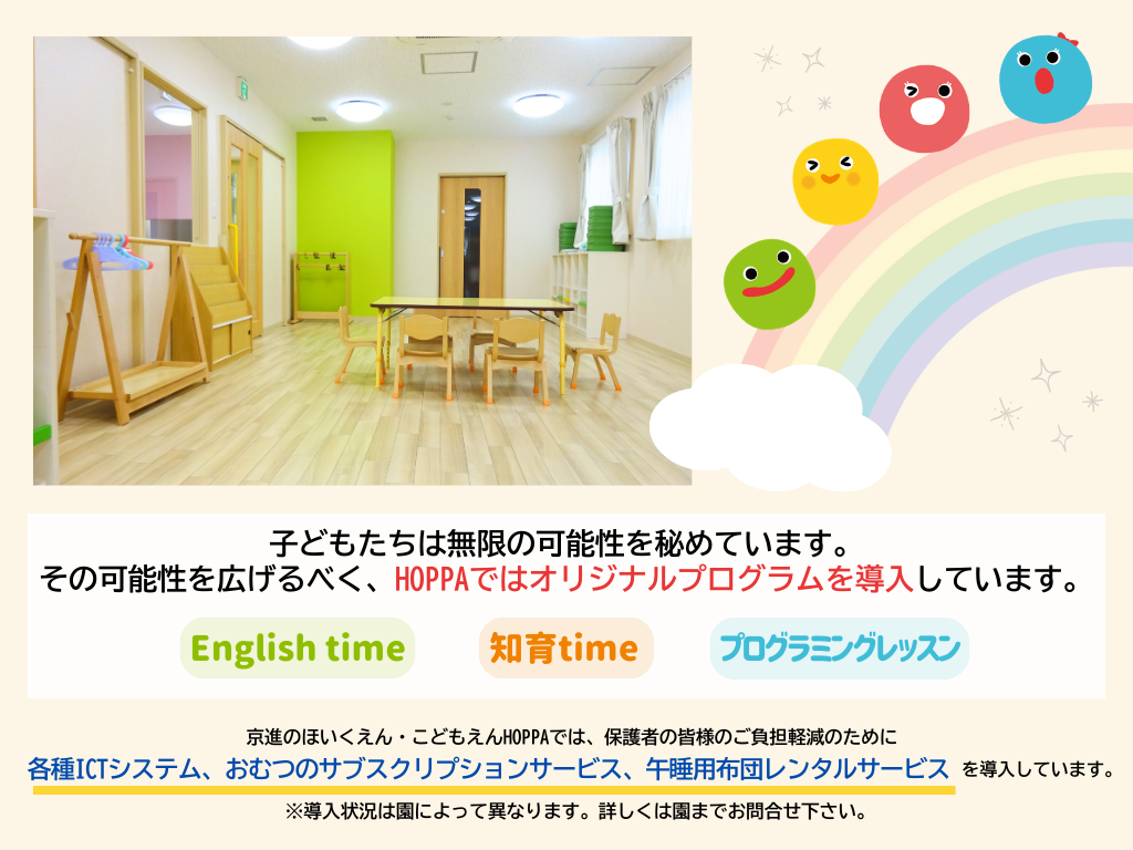 | 15:30 | 知育time 自由あそび 散歩 | 知育time・English time |