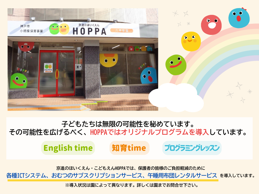 午前8時から午後6時までの間で、保育が必要な時間おあずかりします。