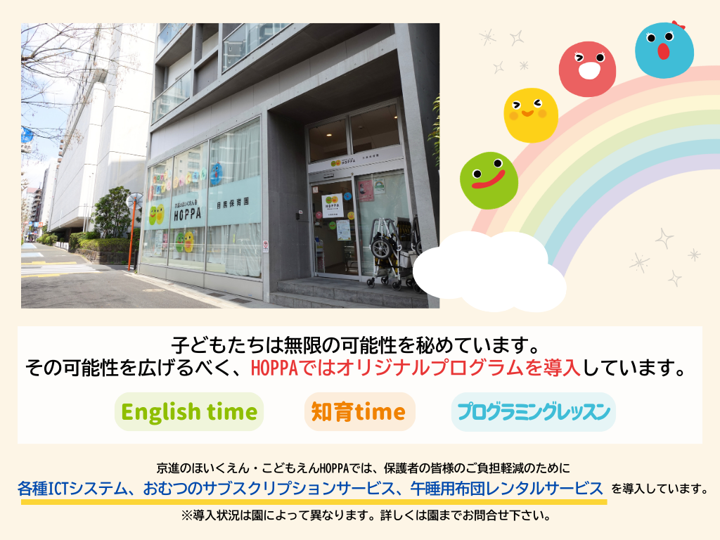| 16:00 | 自由遊び・散歩 ※1・2歳児:知育time お迎え |